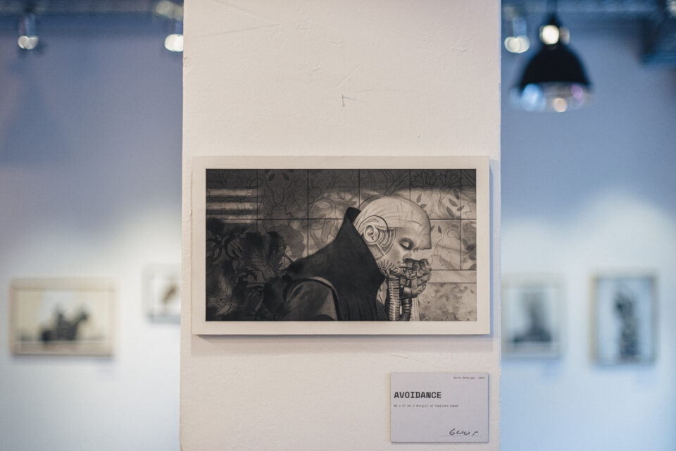 Active since 2018, his work is rooted in realism with a tendency towards melancholic themes and surreal elements. Although predominantly traditional, some of his paintings incorporate a mixed media approach utilizing digital tools. Kept mostly monochromatic, the images often depict a subject-centered composition with an emphasis on emotions and body language. The paintings are done by layering hundreds of translucent acrylic washes atop each other to build contrast. David has grown very fond of this time intensive process and values it for its meditative qualities.