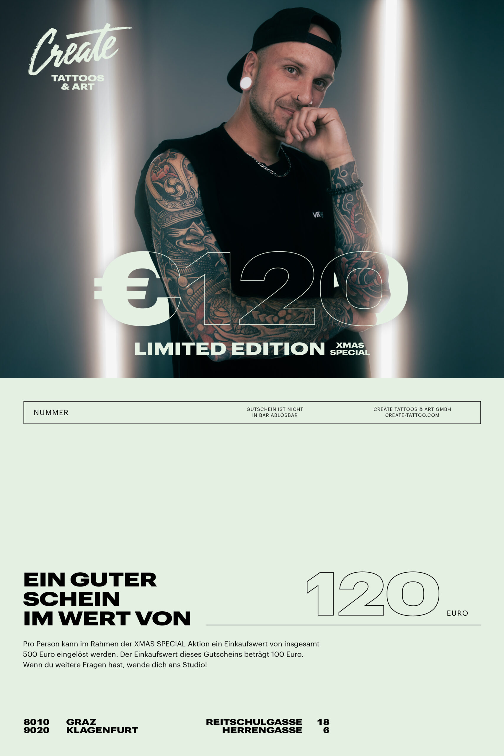 Pro Person kann im Rahmen der XMAS SPECIAL Aktion ein Einkaufswert von insgesamt 500 Euro eingelöst werden. Die XMAS-Gutscheine können ab 1. Jänner 2026 eingelöst werden. Wenn du weitere Gutscheine haben möchtest oder Fragen dazu hast, wende dich am besten direkt an eines unserer Studios.