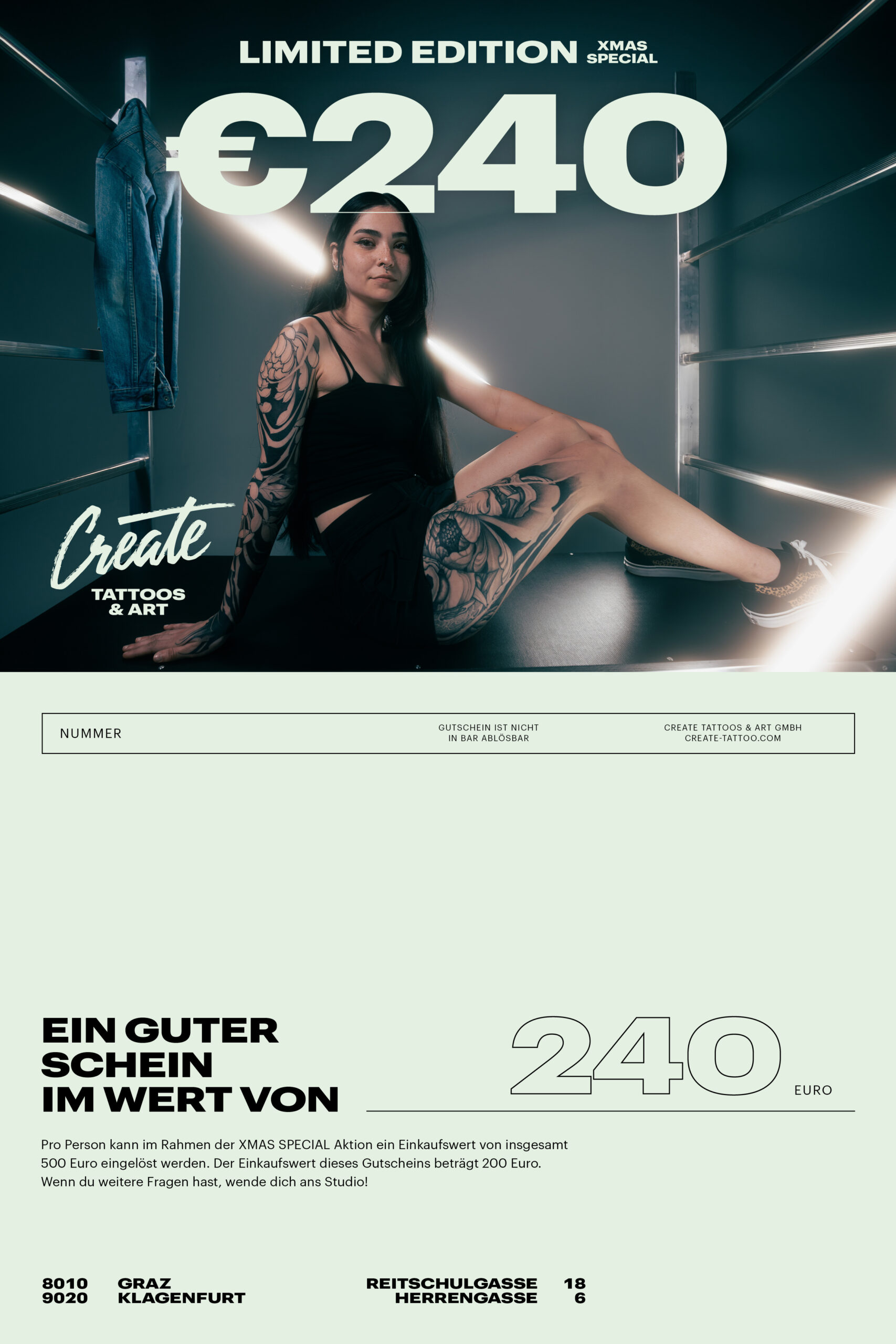 Pro Person kann im Rahmen der XMAS SPECIAL Aktion ein Einkaufswert von insgesamt 500 Euro eingelöst werden. Die XMAS-Gutscheine können ab 1. Jänner 2026 eingelöst werden. Wenn du weitere Gutscheine haben möchtest oder Fragen dazu hast, wende dich am besten direkt an eines unserer Studios.